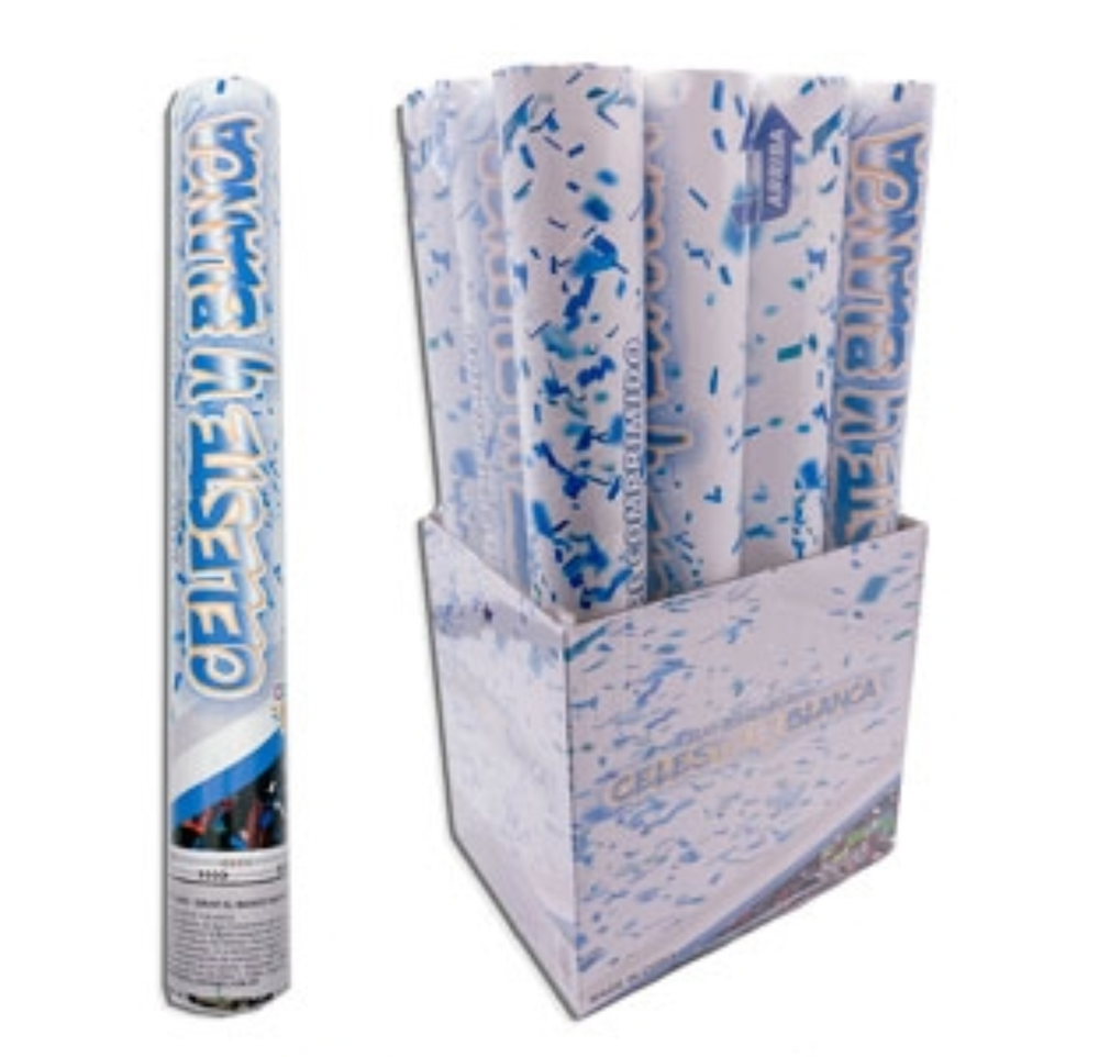 Cañón lanzapapeles celeste y blanco
